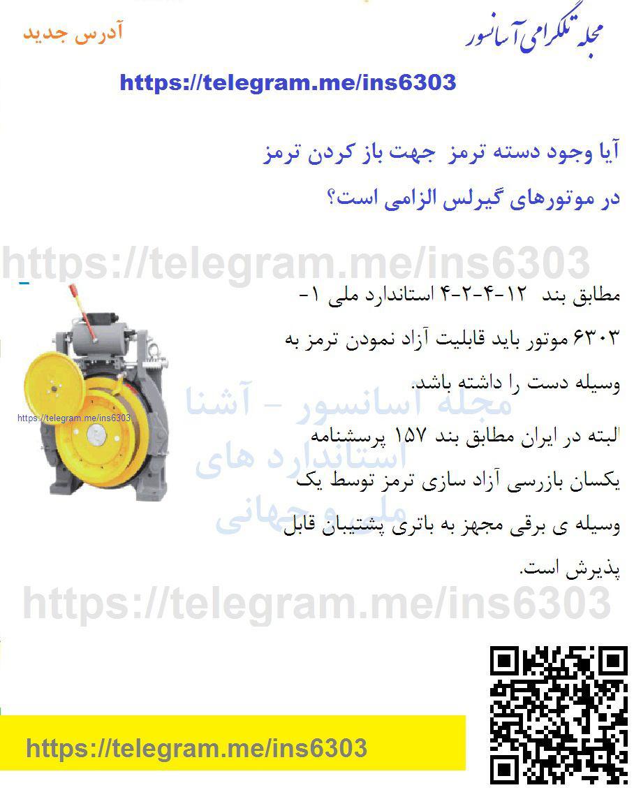 - هر نوع سیستم محرکه که در آن وسیله عملکرد دستی اضطراری (۱۲-۵-۱) تعبیه شده باشد باید قابلیت آزاد نمودن ترمز را بوسیله دست داشته و برای نگهداری ترمز در حالت باز به وارد آوردن نیروی مداوم توسط فرد نیاز داشته باشد.