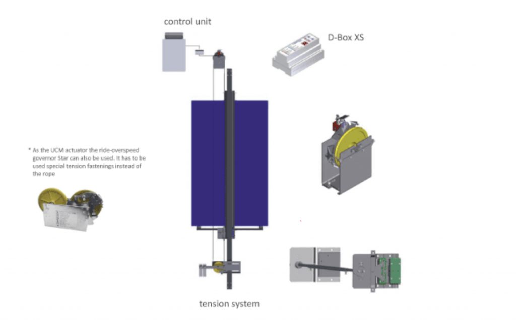 می توان از جعبه کنترل ( تشخیص) ، گاورنر دوطرفه و ترمز ایمنی ( پاراشوت ) دو طرفه استفاده نمود.