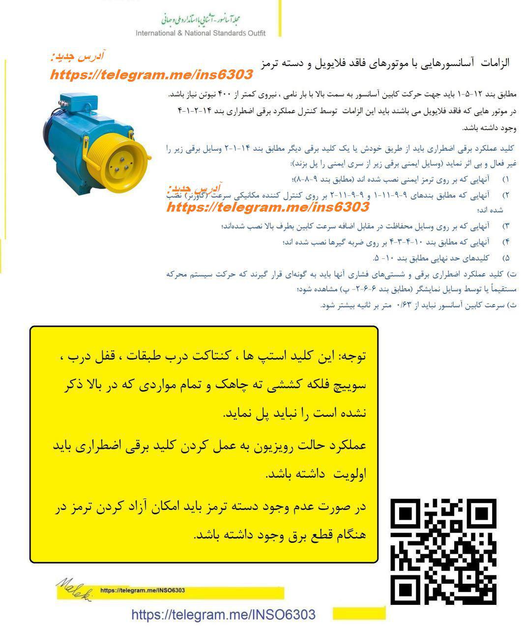 پ) کلید عملکرد برقی اضطراری باید از طریق خودش یا یک کلید برقی دیگر مطابق بند ۱۴-۱-۲ وسایل برقی زیر را غیر فعال و بی اثر نماید (وسایل ایمنی برقی زیر از سری ایمنی را پل بزند):